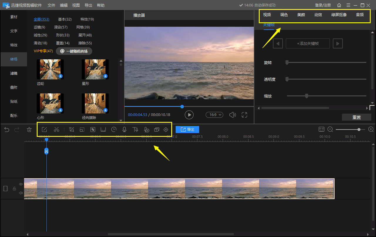 它操做简单很简单,还能让做品愈加专业和吸惹人。具有先辈的特效感化,可以或许轻松实现视频、音频、字幕的同步处置。能够正在短时间内制做出高质量的视频。导入视频后,